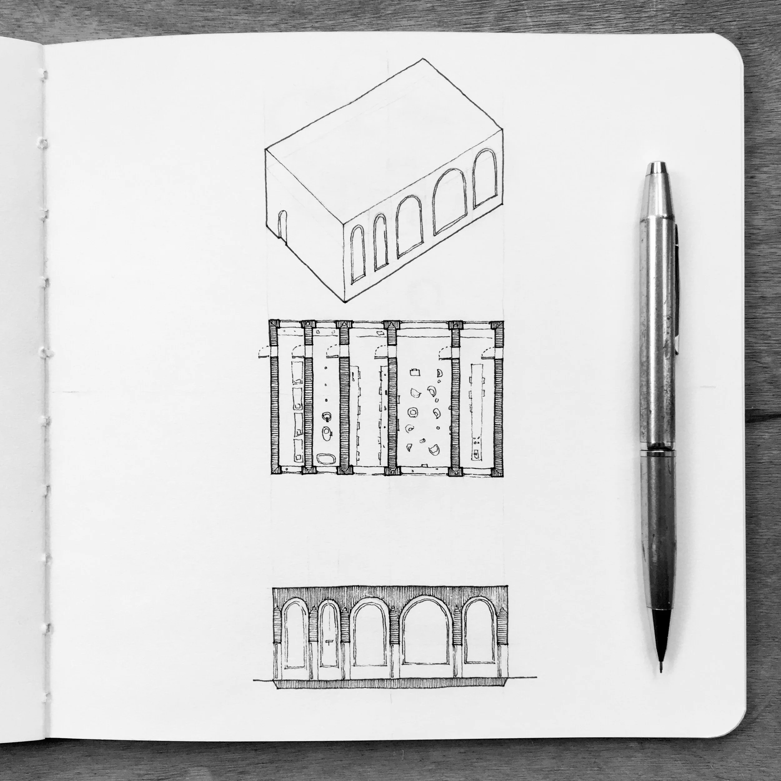 One House Per Day no.124 is a series of vaulted rooms of different widths, all contained within an austere rectangular prism.